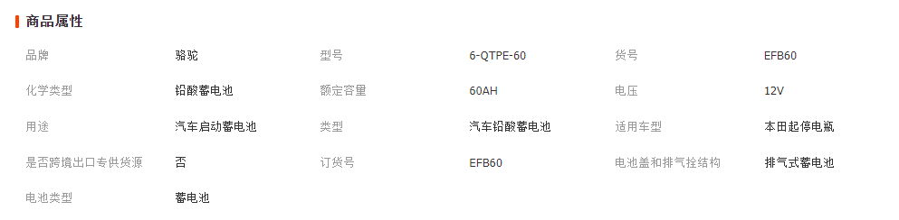 瓦尔塔蓄电池(3) 骆驼驻车空调(2) 骆驼启停蓄电池(4) 骆驼1S蓄电池(4) 骆驼2S蓄电池(16) 骆驼天鹅蓄电池(15) 风帆蓄电池(12) 克派蓄电池(16) 汤浅蓄电池(2) 超威电动车电瓶(1)