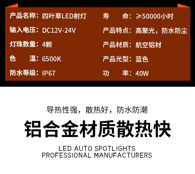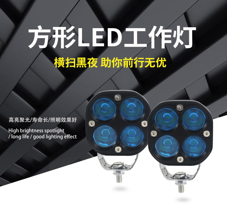 新款汽车摩托车LED工作射灯3寸40W 越野远光前杠辅助蓝色雾灯聚光