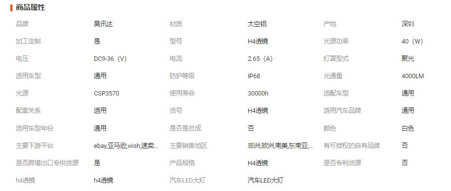 跨境热销H4前照灯泡远近光一体LED摩托车直插h4透镜汽车LED大灯