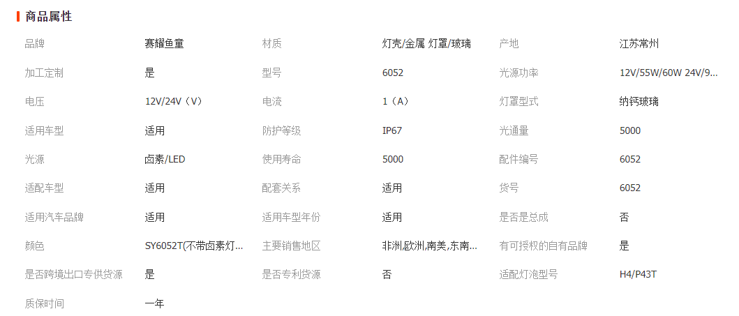 6052半封闭7寸方灯5*7/6*7英寸6054光束灯前大灯芯适配H4P43 T灯泡