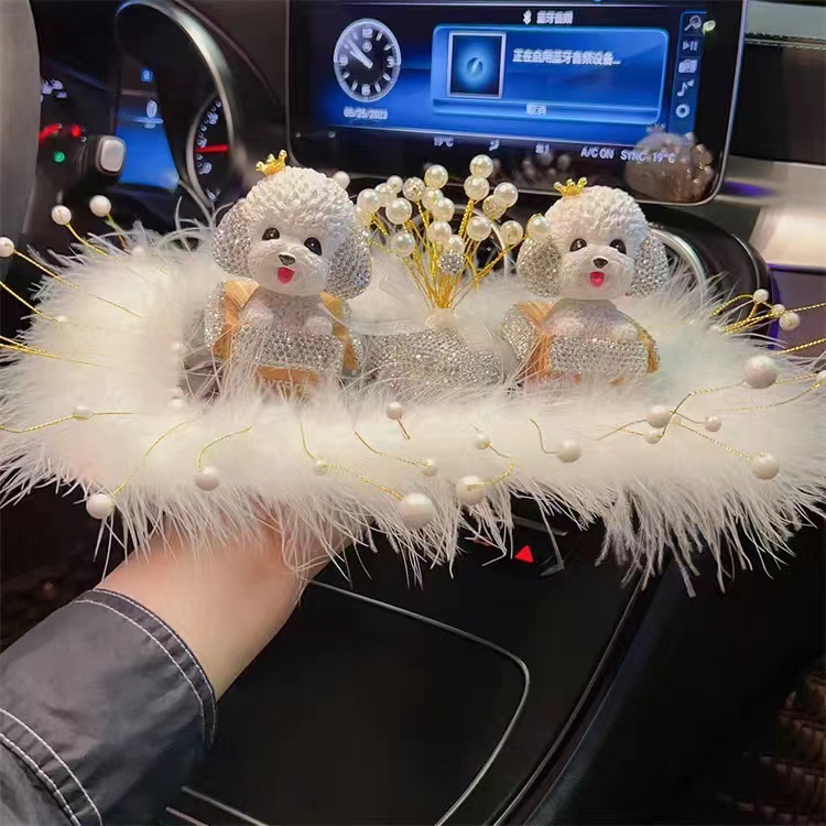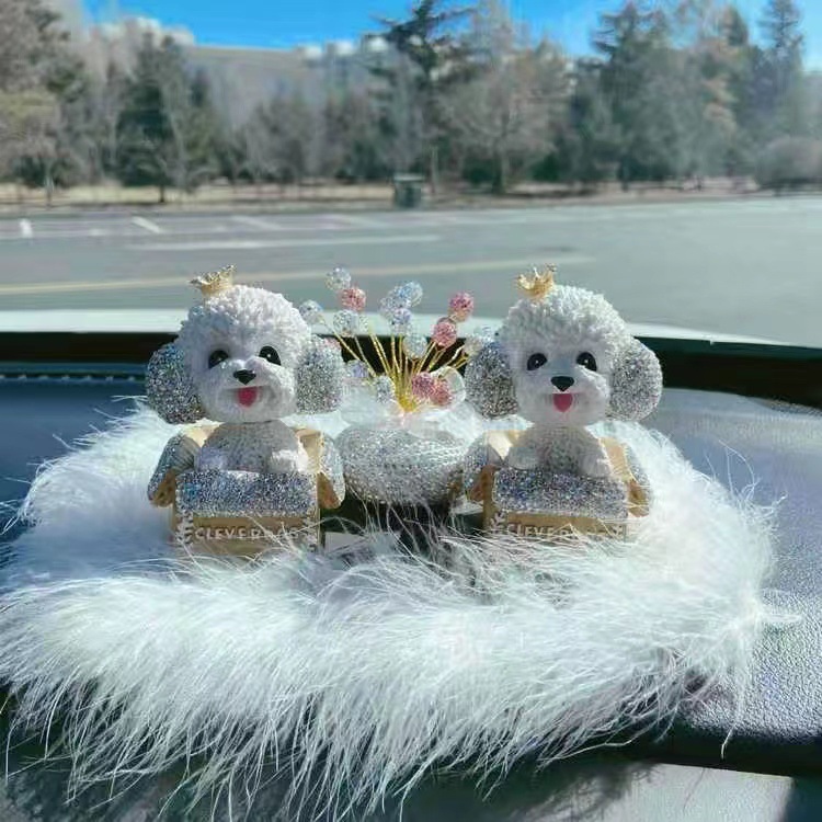 女士高档汽车摆件中控台镶钻摇头泰迪狗装饰品香薰满天星车载摆件