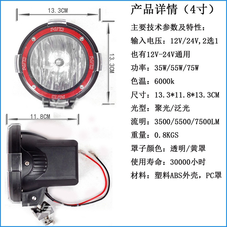 7寸HID氙气行驶灯12V35W越野车车顶改装工作灯 户外射灯钓鱼灯