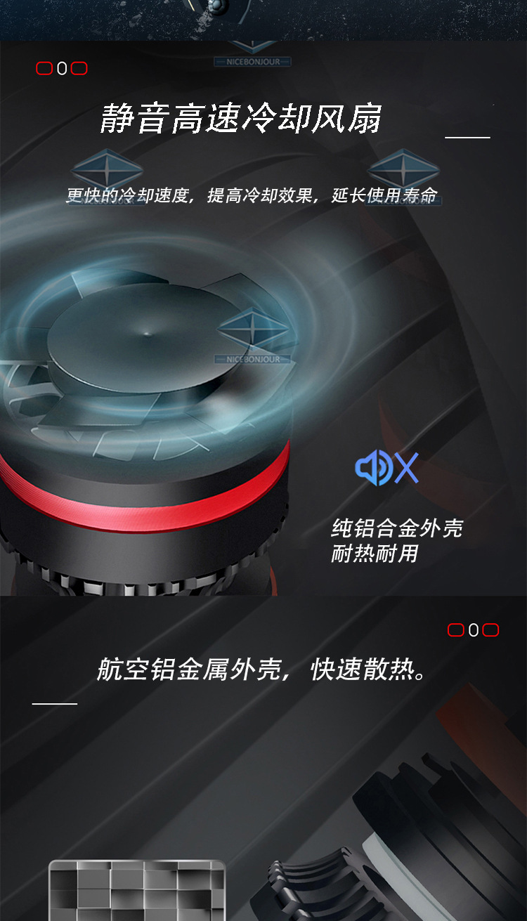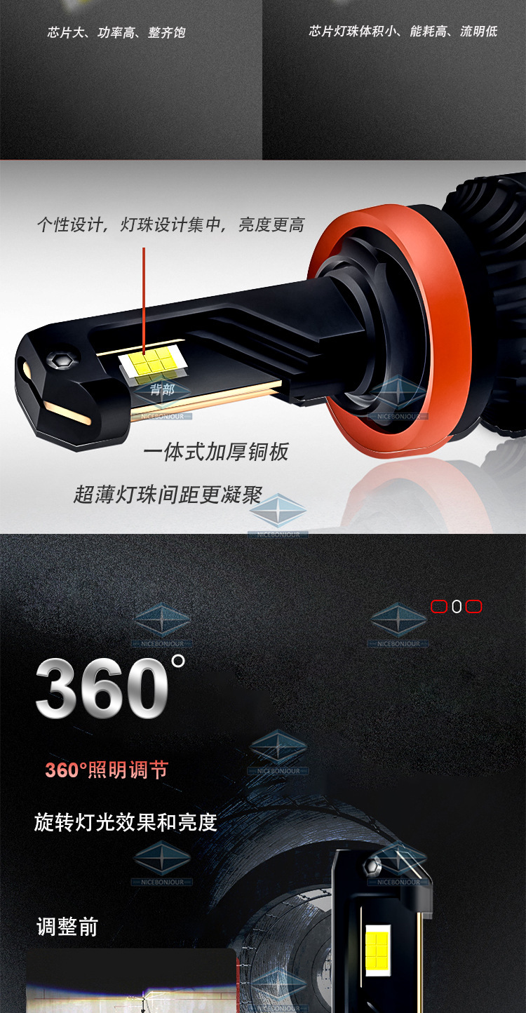跨境热卖改装通用9005车载前大灯 单铜管大功率h4聚光汽车LED大灯