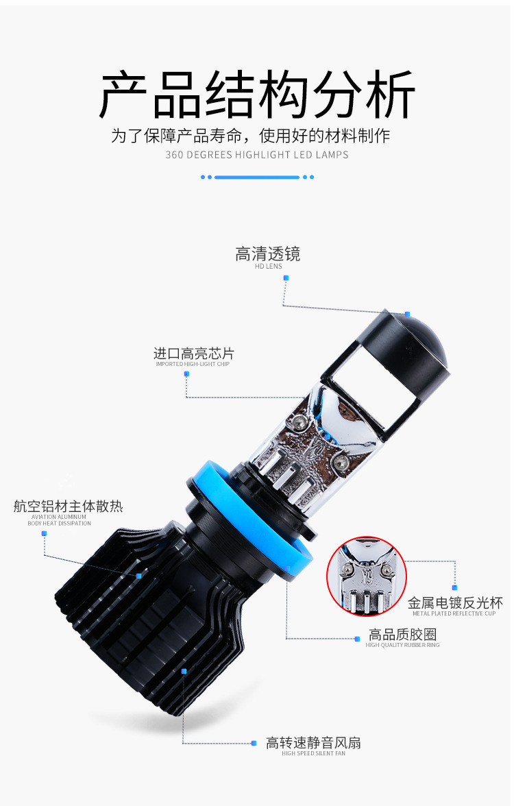 跨境工厂定制汽车大灯透镜款摩托车汽车通用高亮汽车头灯LED大灯