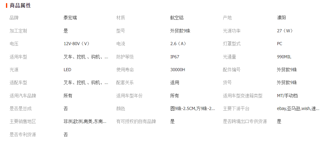 产品信息 2、高亮度:亮度是卤素灯的3倍; 3、长寿命:50000小时以上的超长点亮时间,超长寿命 4、适用范围广:可用于前雾灯,驾驶灯;也可以用于工作灯,工程灯;也可以用于辅助灯、倒车灯。 5、外壳材料为合金材质,方便安装,防水防震性都很好。 6、本光形是一种超强白光,几乎和白昼一样明亮!