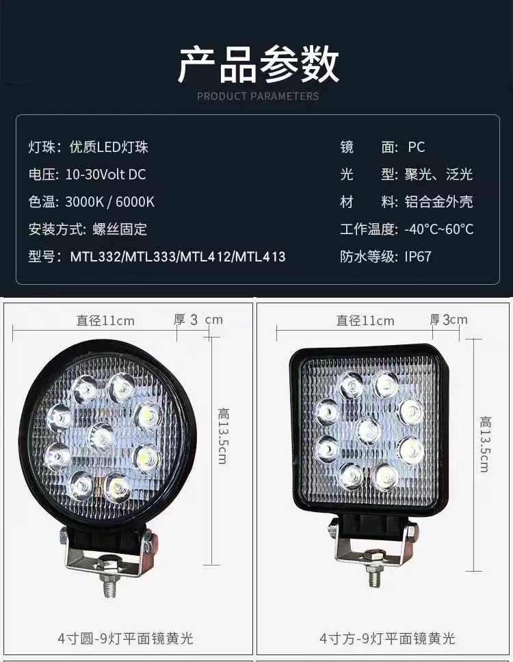 12V24V挖机大臂灯LED散光高亮工程车钩机铲车装载机叉车照明大灯