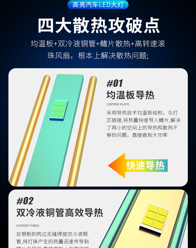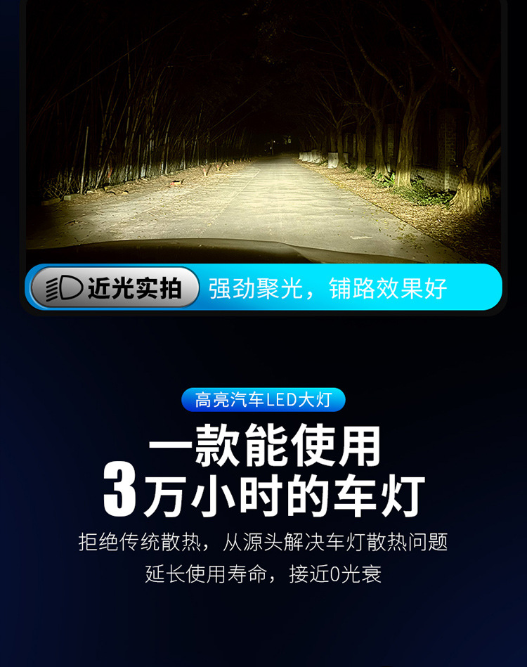 新款暖黄光led车灯h3 h4 h11 H1 4300k小车汽车led大灯改装 前大灯