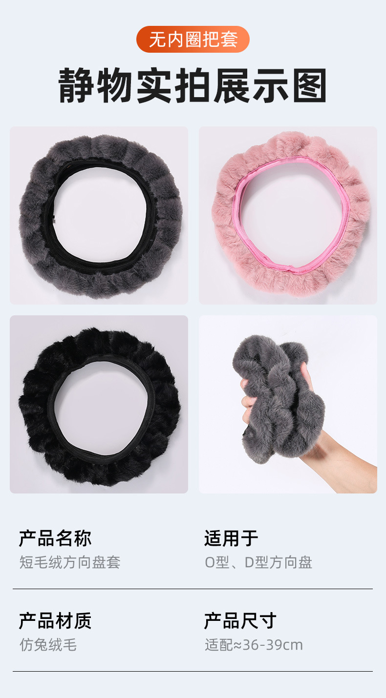 新款汽车方向盘套短毛绒款冬季保暖防滑方向盘把套无内圈男女通用