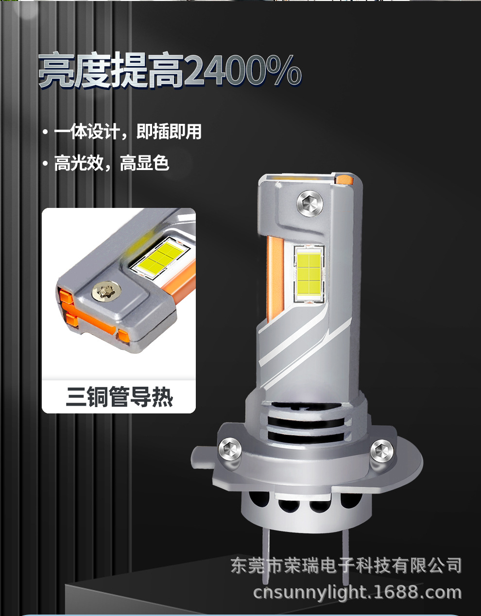 欧美亚马逊热销汽车led headlights 大灯高亮1:1直插H7三铜管LED