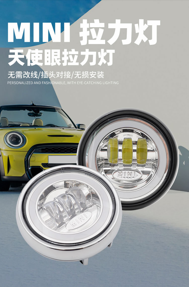 超亮90W天使眼透镜mini中网拉力灯 bm迷你专用日行灯雾灯改装灯