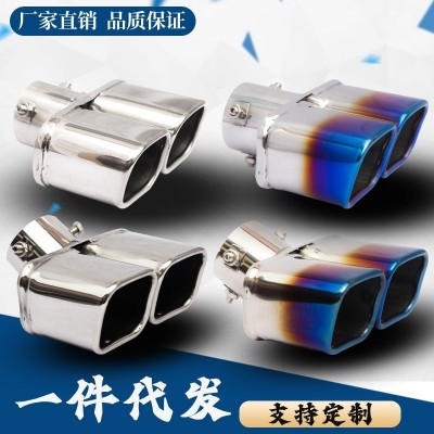 跨境热销方口双排弯双排直方形汽车尾喉加厚不锈钢排气管消音器