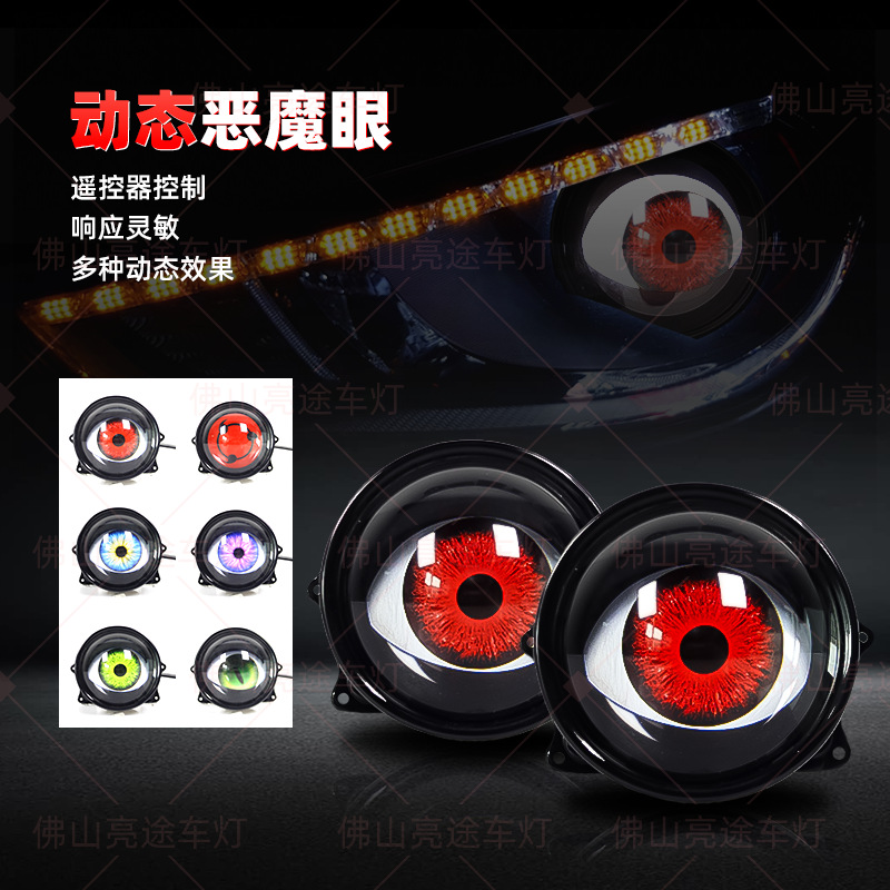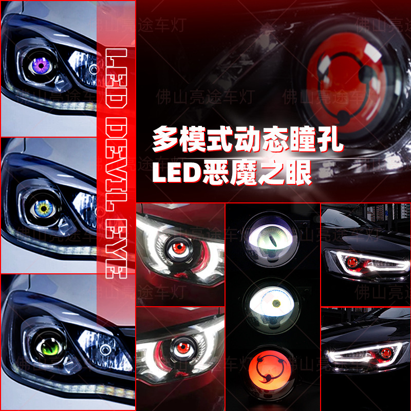 升级动态恶魔眼透镜款多图案汽车大灯改装9号电动车国外抖音热卖