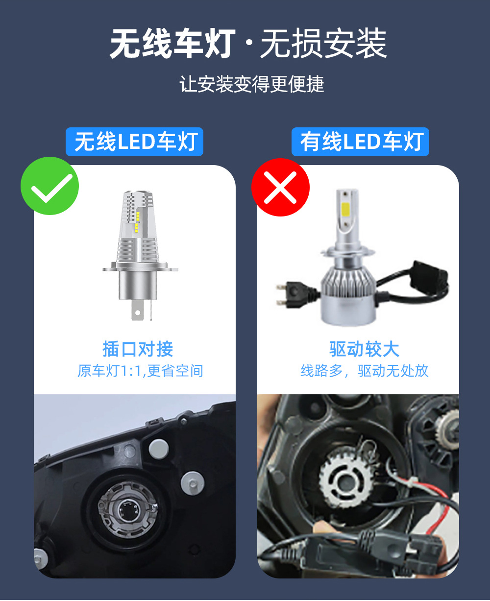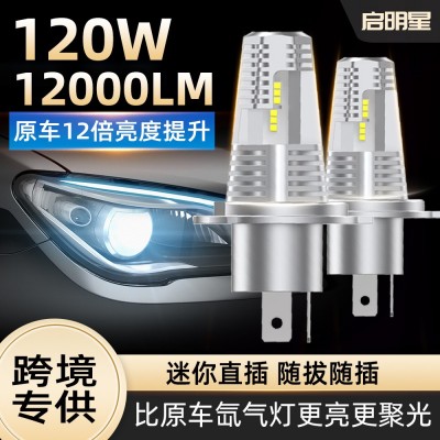 汽车led大灯h7双铜管汽车led灯前大灯h4T100无损直插式120W大功率