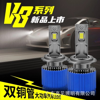亮见新款led汽车前大灯双铜管大功率h7改装灯泡H4厂家批发聚光LED