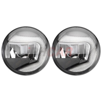 汽车通用远近光一体LED双光透镜雾灯总成 改装激光青柠白光车大灯