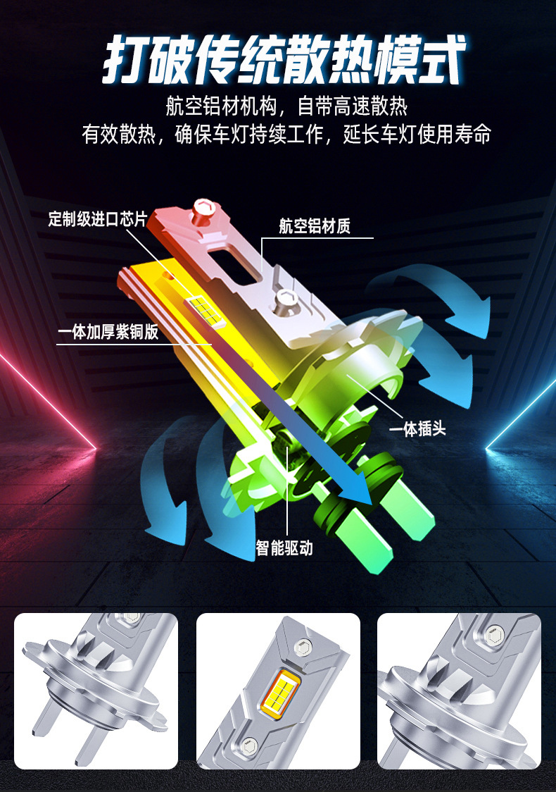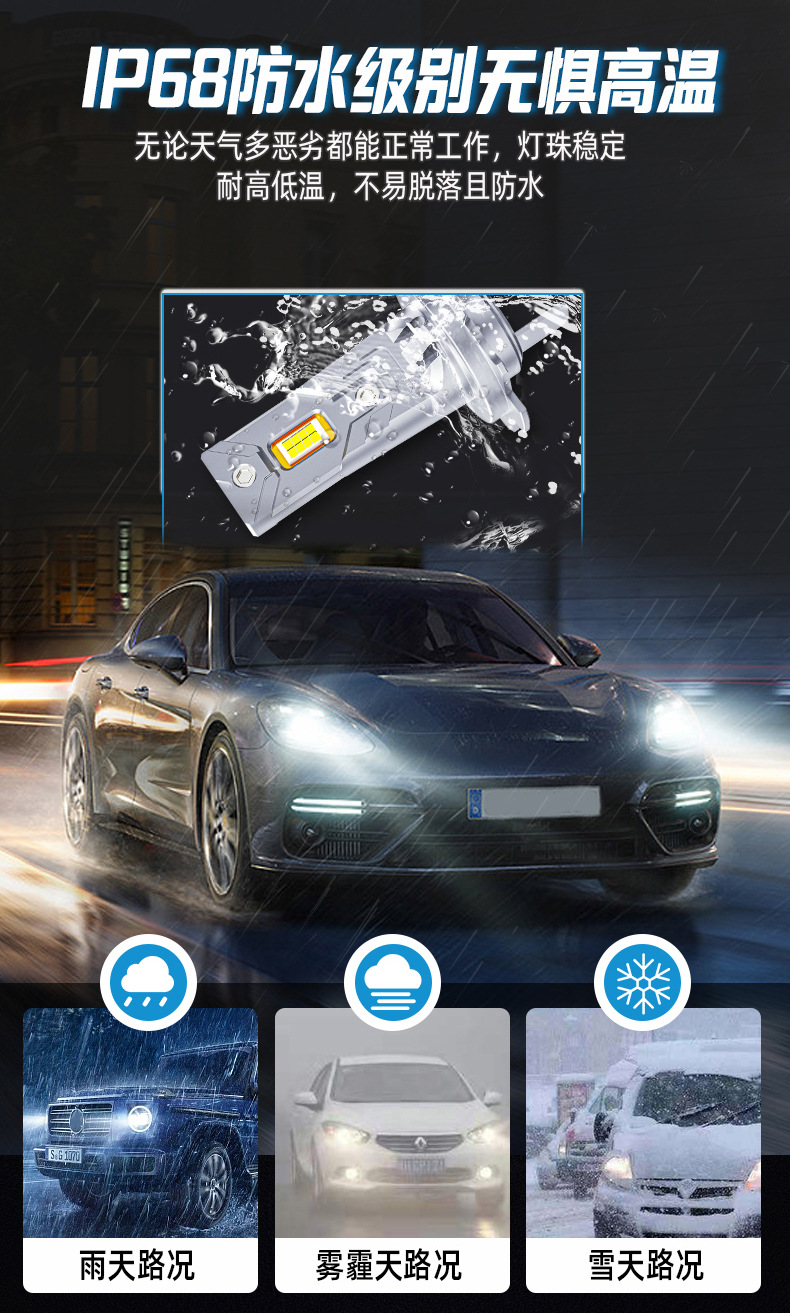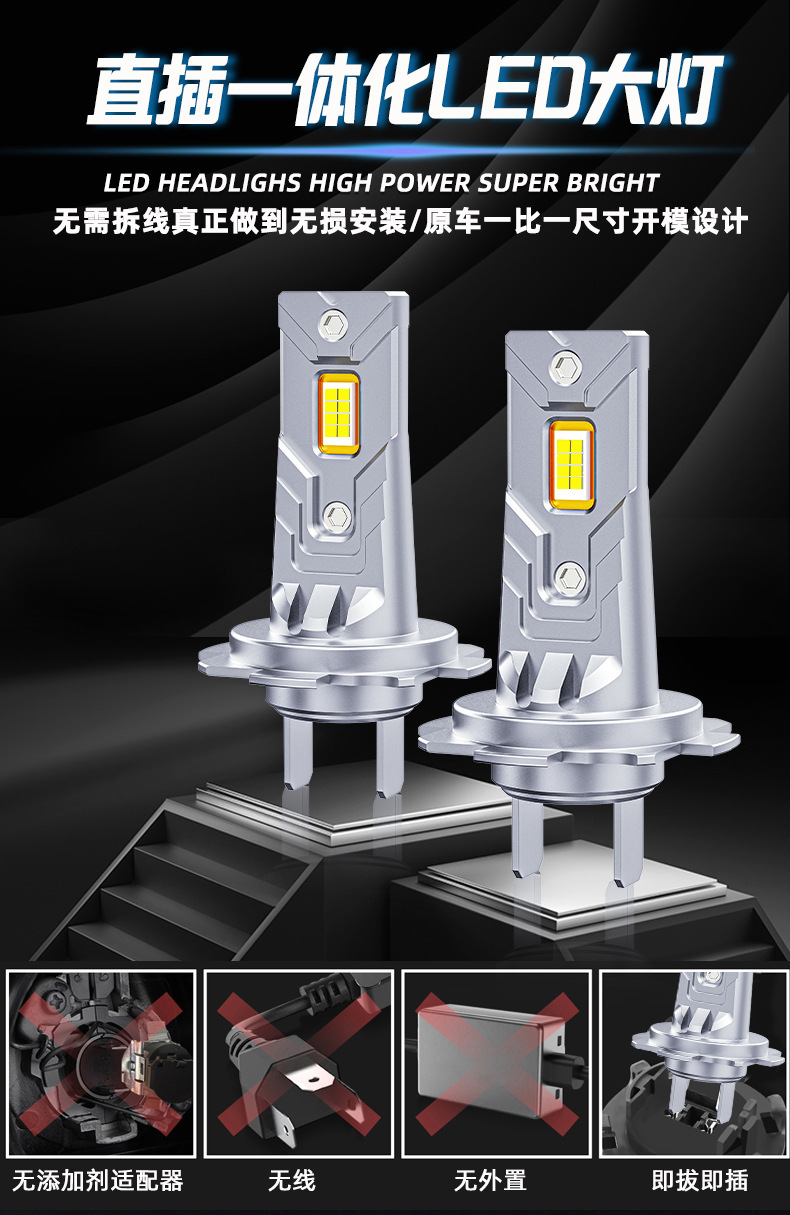 HAIZG新款D8跨境热销汽车led大灯迷你直插式H1 H7 H4高亮聚