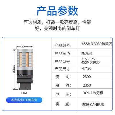 本网页所展示的有关【加工定制 45smd 3030倒车灯7443刹车灯T15刹车灯3156 3157 转向灯_车灯_东莞市刚亮照明有限公司】的信息/图片/参数等由车云汇服务网的会员【东莞市刚亮照明有限公司】提供,由车云汇服务网会员【东莞市刚亮照明有限公司】自行对信息/图片/参数等的真实性、准确性和合法性负责,本平台(本网站)仅提供展示服务,请谨慎交易,因交易而产生的法律关系及法律纠纷由您自行协商解决,本平台(本网站)对此不承担任何责任。您在本网页可以浏览【加工定制 45smd 3030倒车灯7443刹车灯T15刹车灯3156 3157 转向灯_车灯_东莞市刚亮照明有限公司】有关的信息/图片/价格等及提供【加工定制 45smd 3030倒车灯7443刹车灯T15刹车灯3156 3157 转向灯_车灯_东莞市刚亮照明有限公司】的商家公司简介、联系方式等信息。